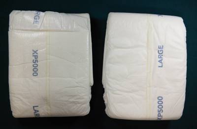 White plastic brief with dark blue “XP5000” and two thin wetness stripes