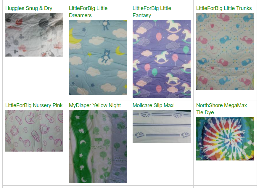The site has 1,094 photos of 179 different items, mostly diapers. There are photo galleries highlighting different kinds of diapers and different views of them.