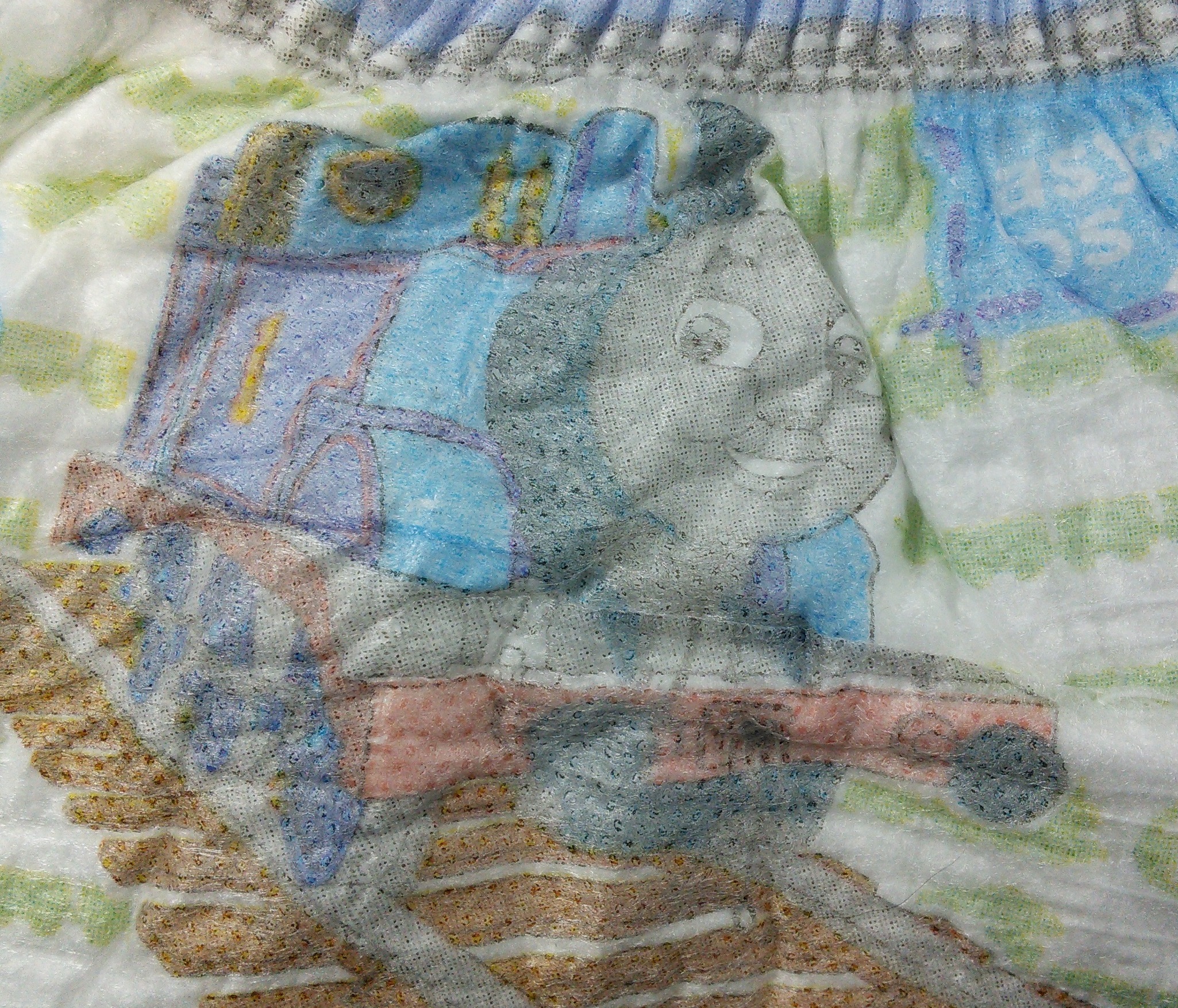 Rectangle on front waist with “easy ups 4T 5T”.