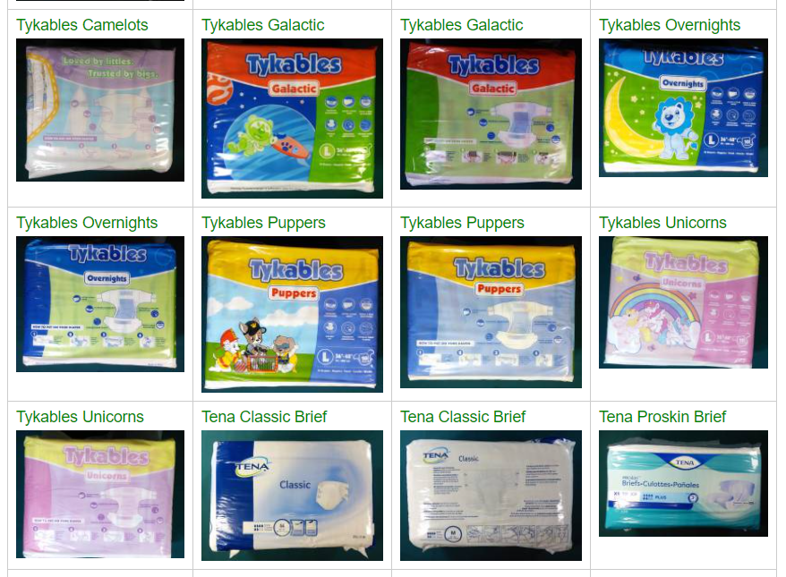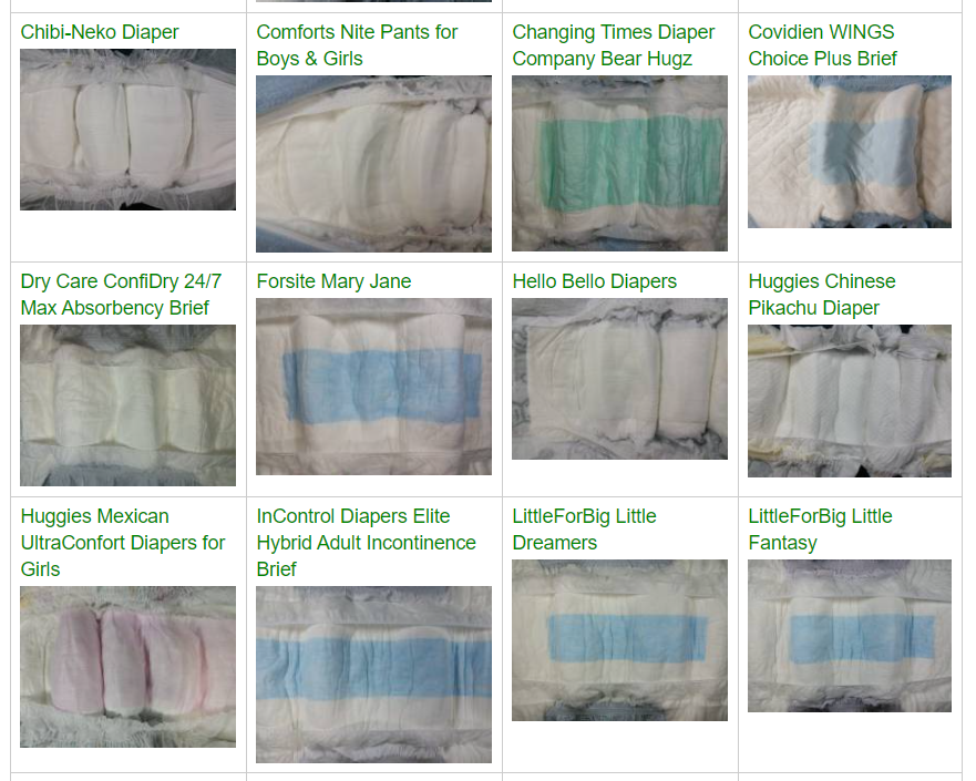 The site has 1,094 photos of 179 different items, mostly diapers. There are photo galleries highlighting different kinds of diapers and different views of them.