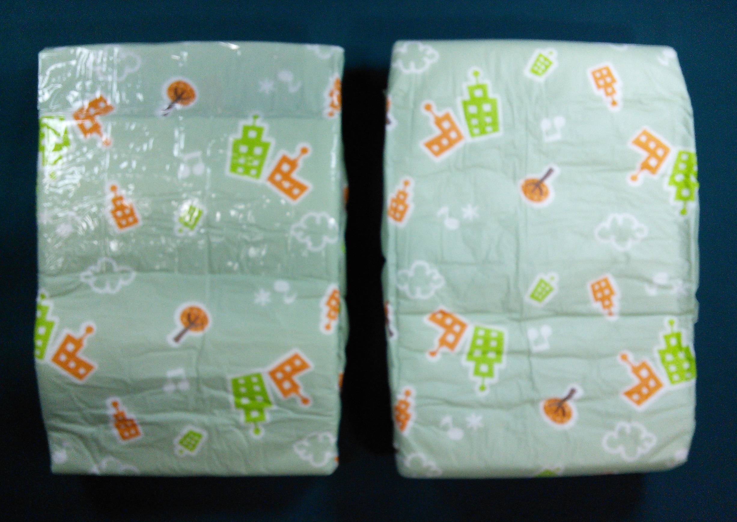 Light green plastic brief with buildings, trees, clouds, and musical notes. Diamond quilted padding.