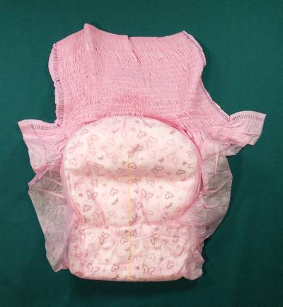 Pink pull-up with butterflies, dragonflies, and hearts.