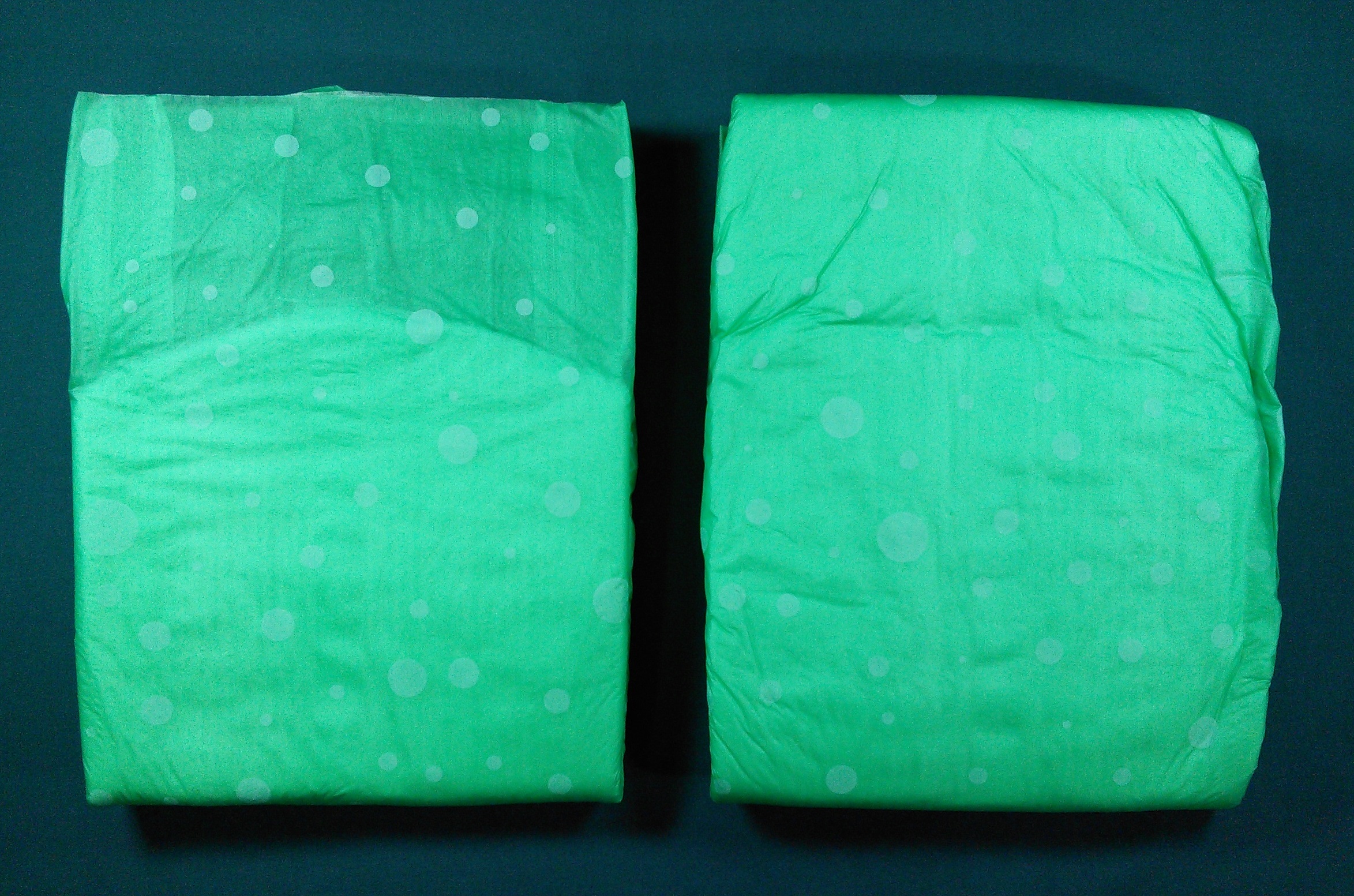 Green plastic brief with lighter green polka dots. The wings say “NorthShore”.
