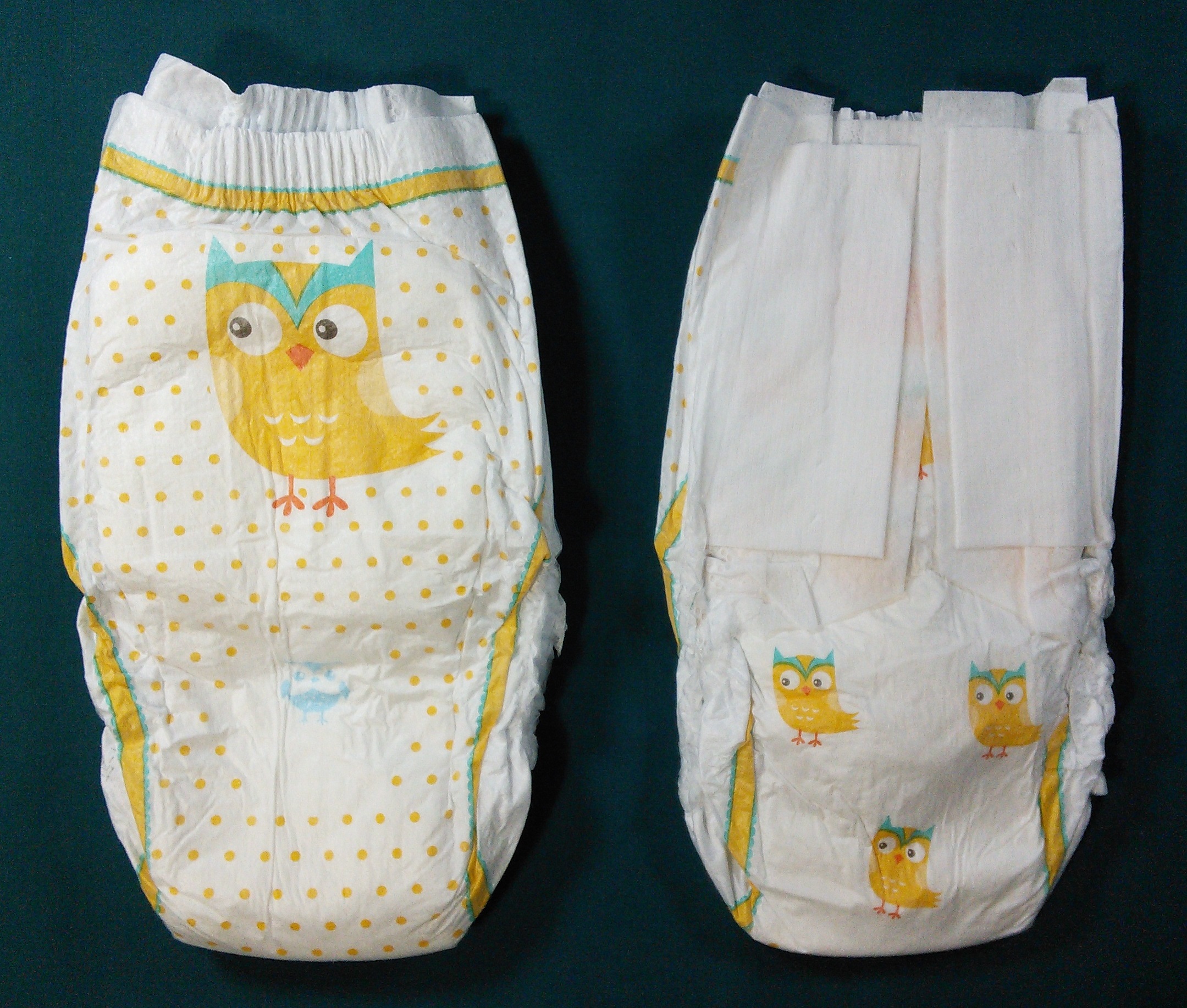 White cloth child pull-up, plain except for a blue oval with white size letters on the back near the waist.