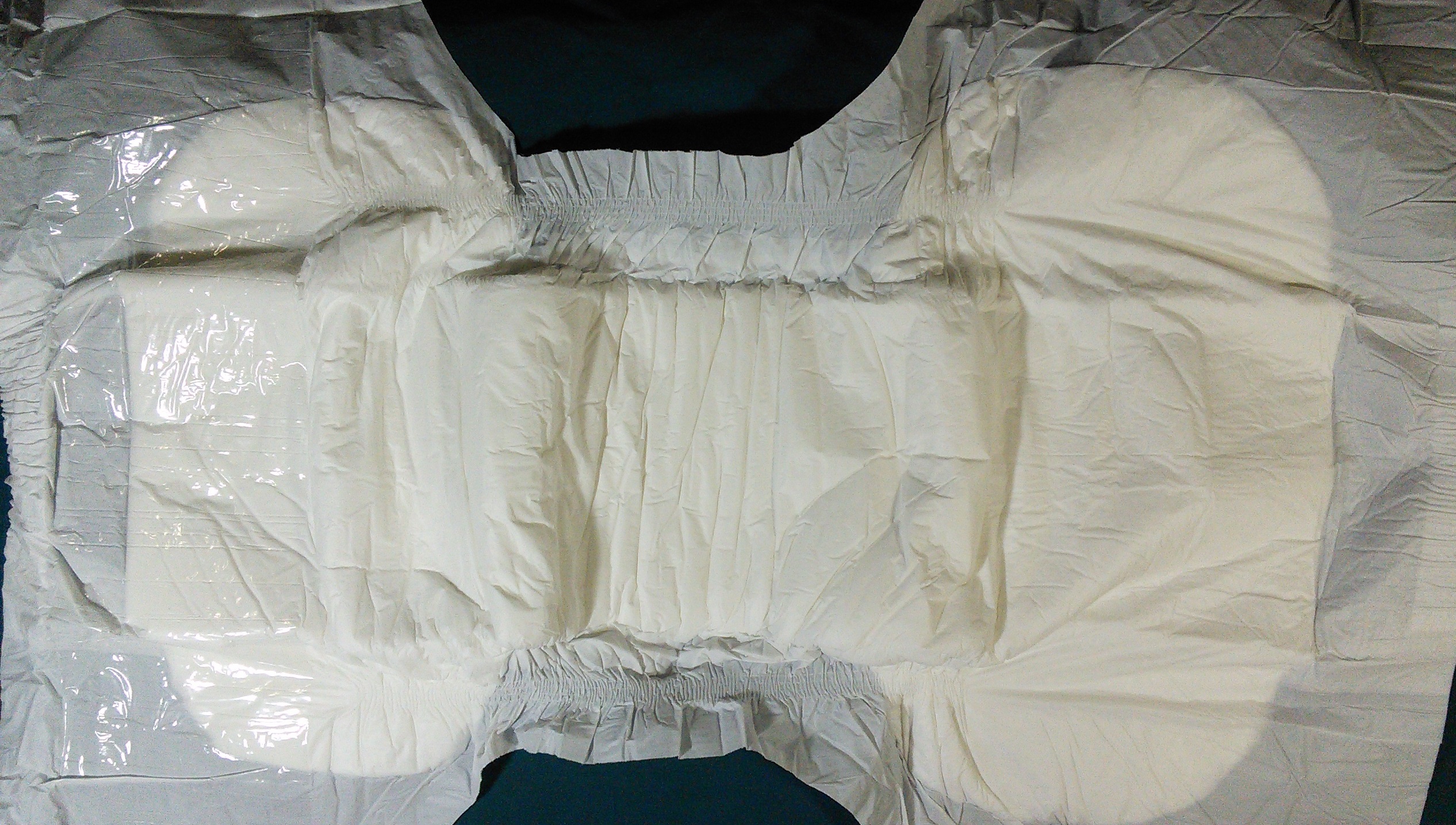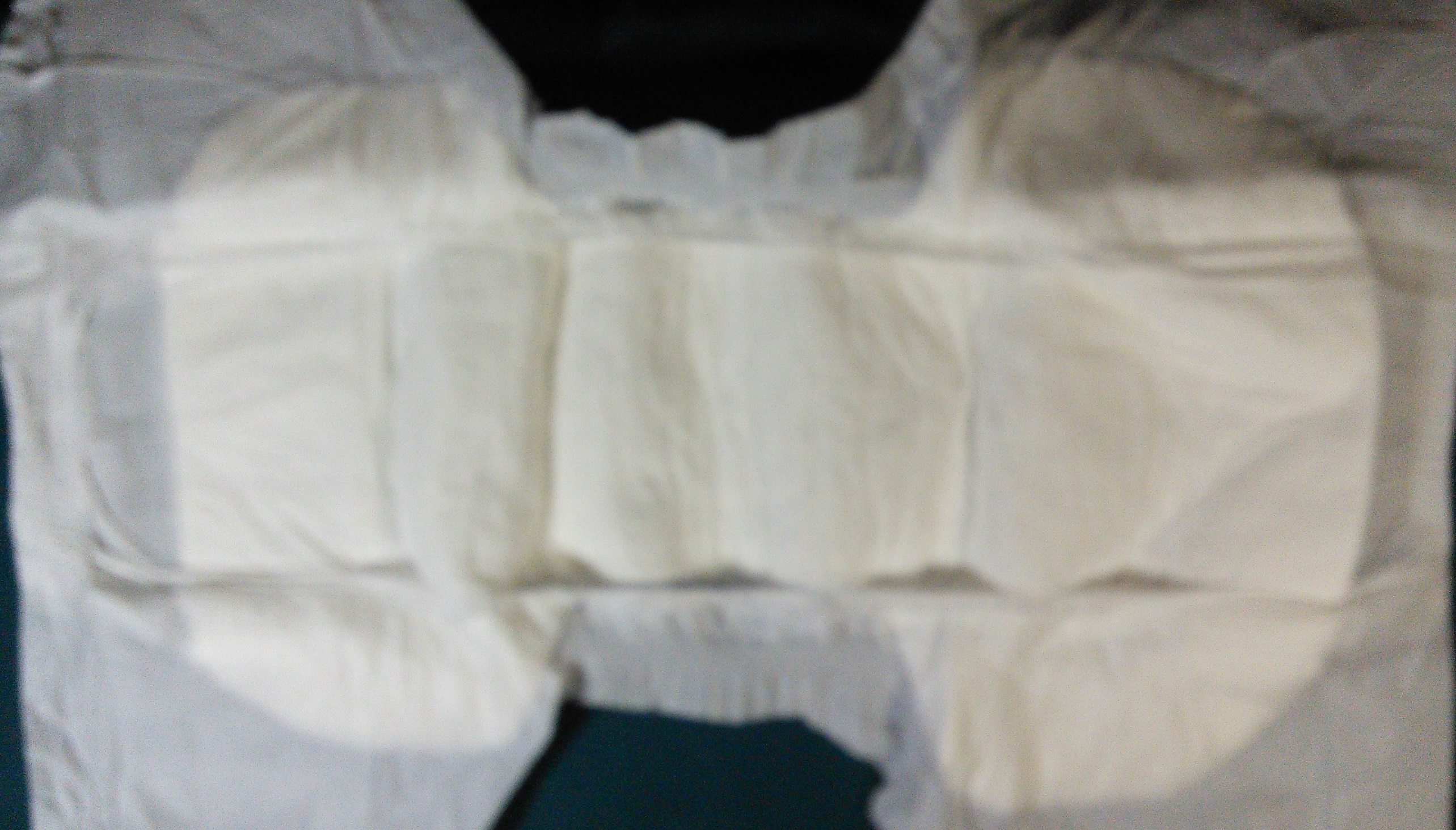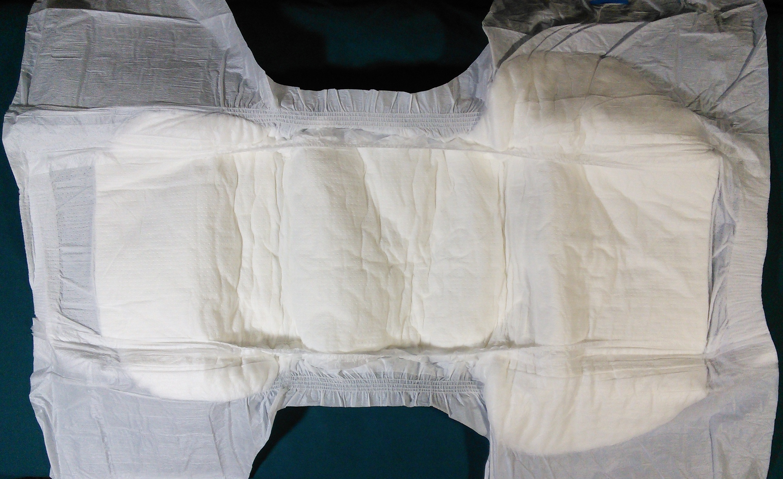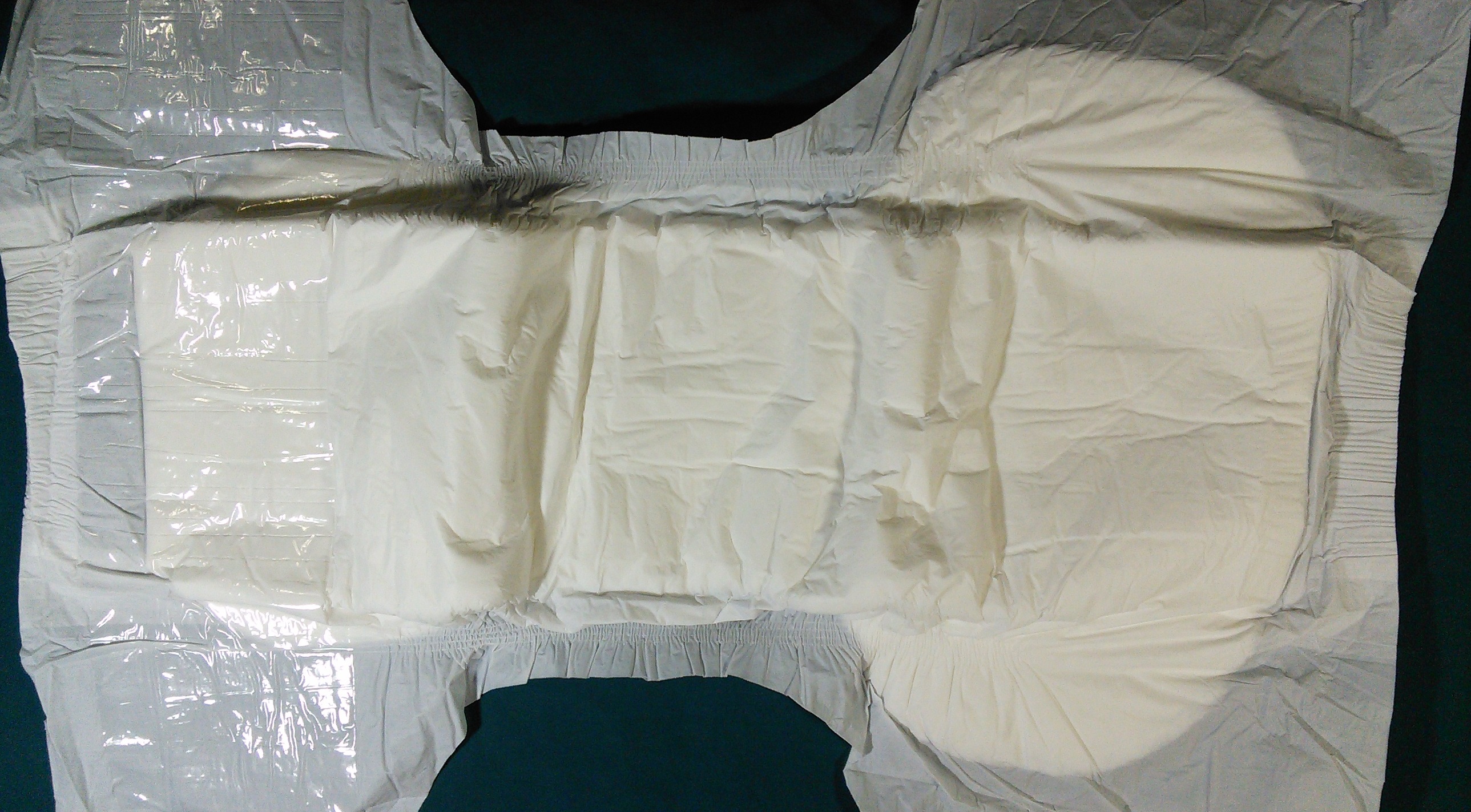 Plain white plastic brief with smooth clear landing zone; white padding.