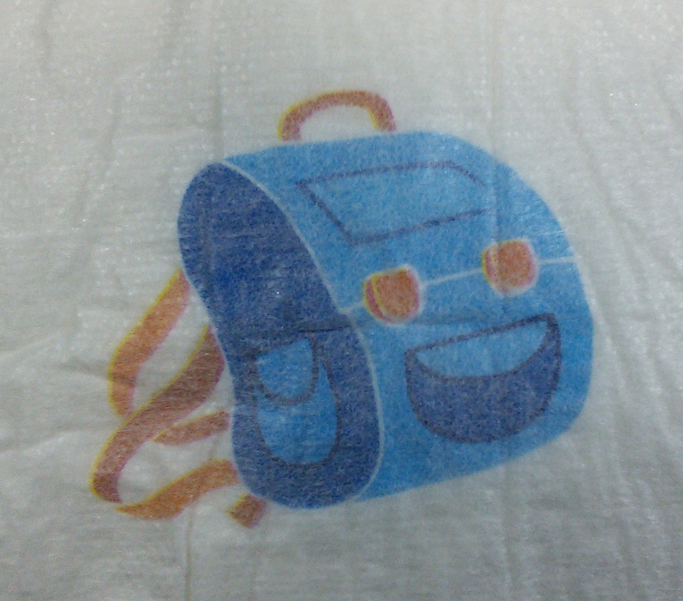 White thick pull-up with “A B C”, “1 + 2 = 3”, books, backpacks, apples, crayons, and owls.