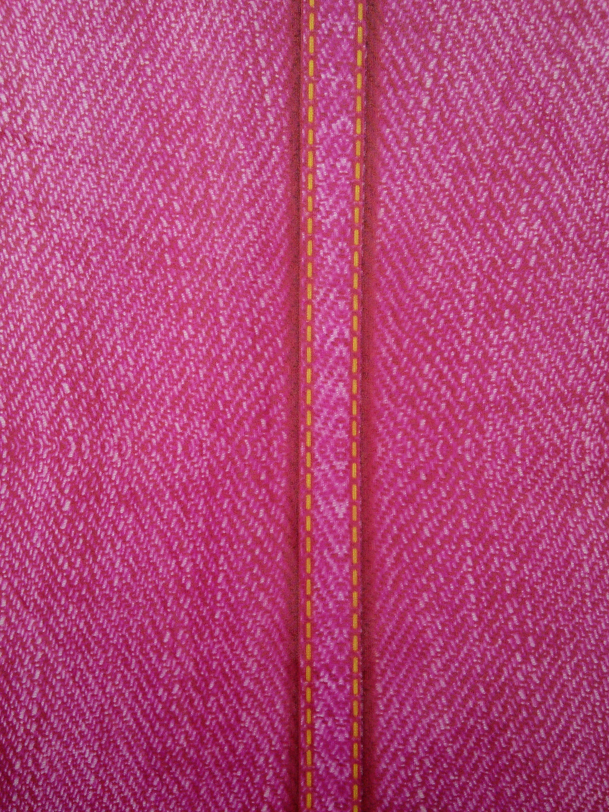 Red plastic brief with a jeans print. The landing zone shows the front of a pair of jeans with the pockets, fly, and belt loops. The borders between the main panel and the wings are seams with fancy stitching.