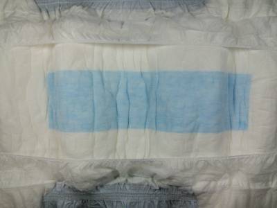 Light blue plastic brief with blue and white teddy bears on white clouds. Yellow crescent moons, yellow and dark blue stars. White and blue pinstripes on wings running through leg gathers.