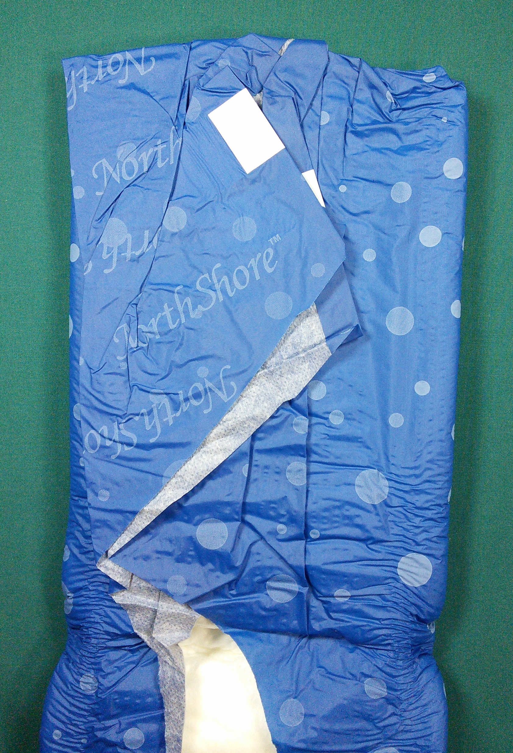 Dark blue plastic brief with lighter blue polka dots. The wings say “NorthShore”.