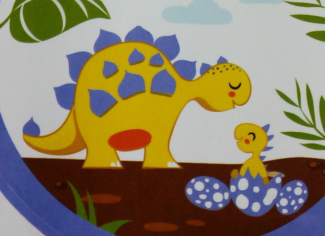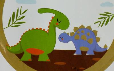 White plastic brief with clear landing zone. Multicolor dinosaurs. Blue “Rearz” and “ROAR”.