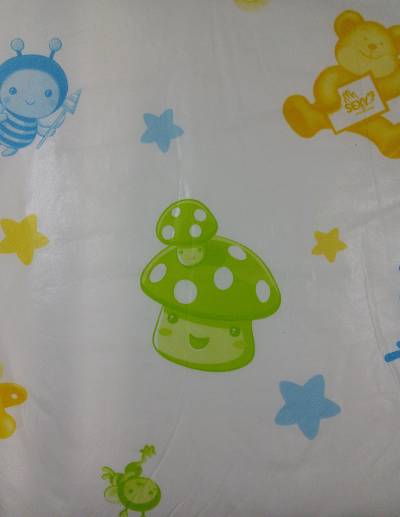 White plastic brief with green bees, yellow and blue stars, yellow pacifiers.
